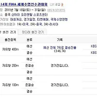 | 박태환 경기일정, 박태환 자유형 400m, 200m, 100m 예선 및 결승 경기 일정 및 중계 좌표 (0) | 2011.07.24 |